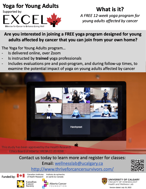 4. We are excited to share that we are continuing to offer our 12-week yoga intervention for young adults affected by cancer. We are currently RECRUITING participants for our Winter 2026 session. (see poster)